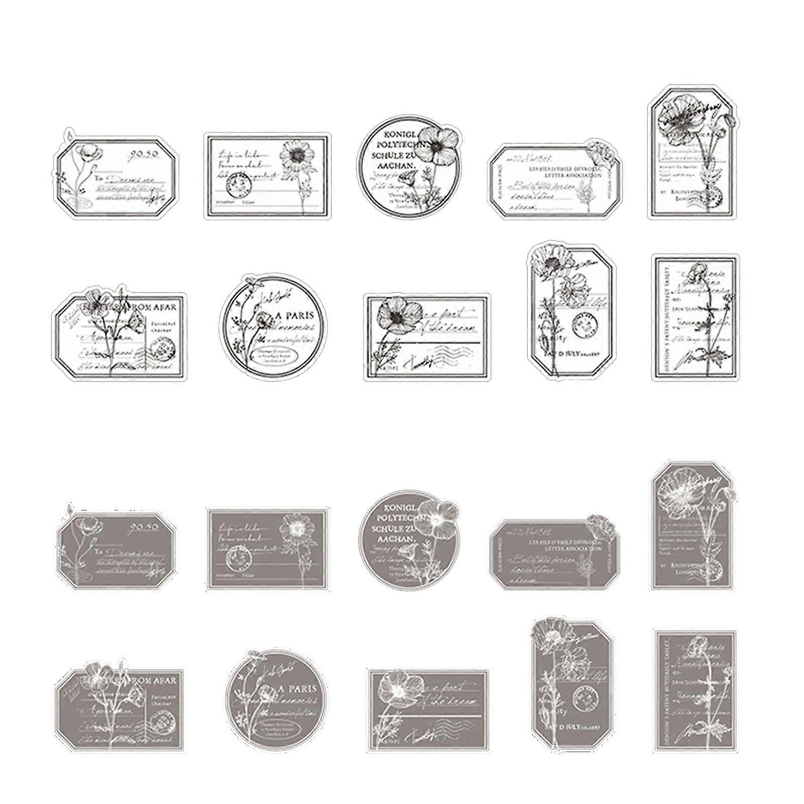 20pcs Handbook Decoration Stickers Flower Plant Decorative Black and White DIY Theme Stickers