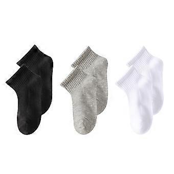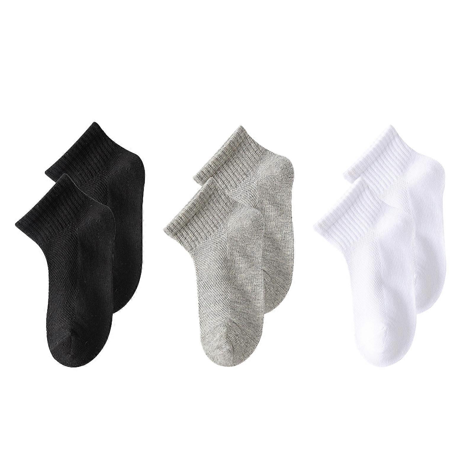3 Pairs Kids Soft Cotton Ankle Socks Boys Girls Breathable Mesh Athletic Socks Black White Gray