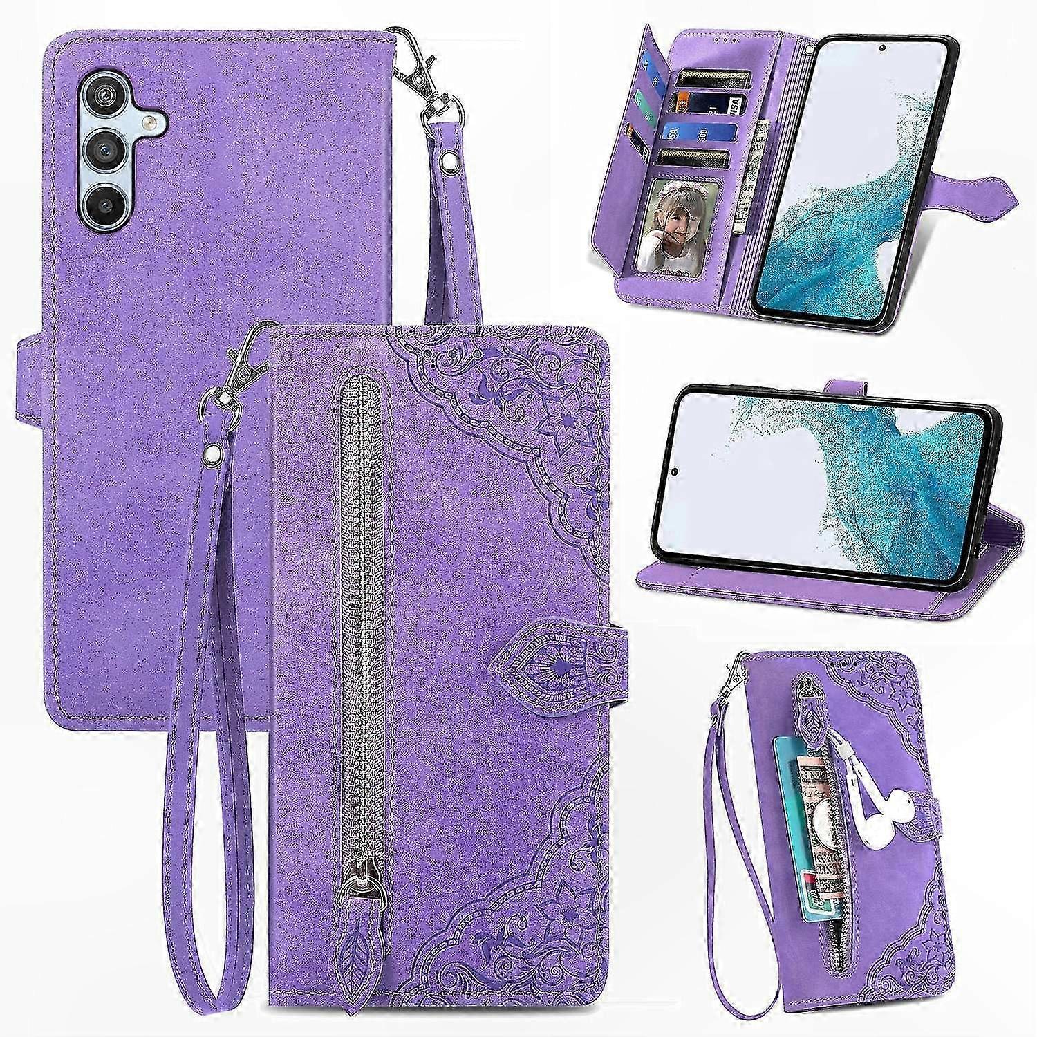PU Leather Zipper Wallet Case with Flower Design for 5G Phones