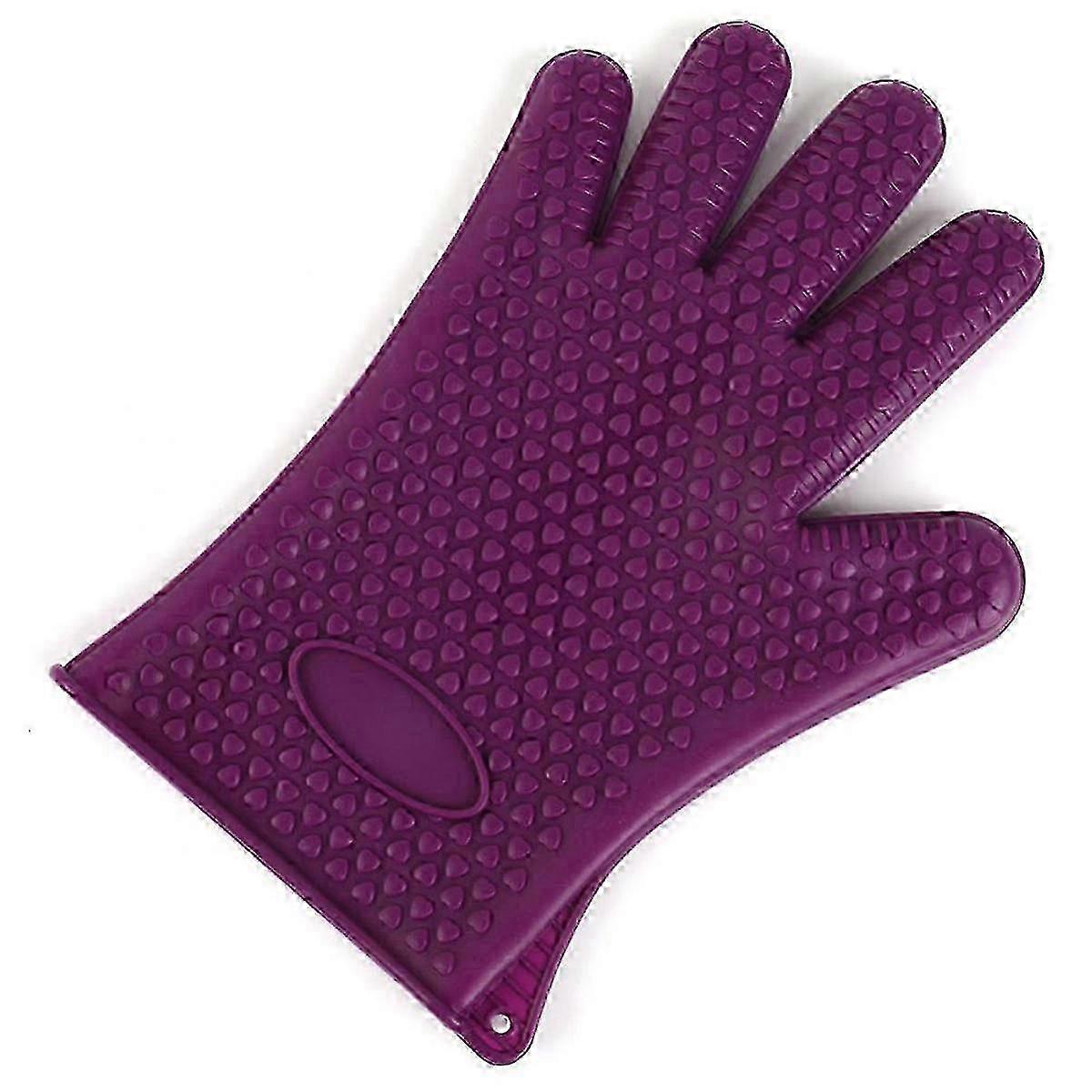 2025 Silicone Heat Resistant Anti Skid Oven Microwave Pot Glove for BBQ Kitchen Cooking(Purple)