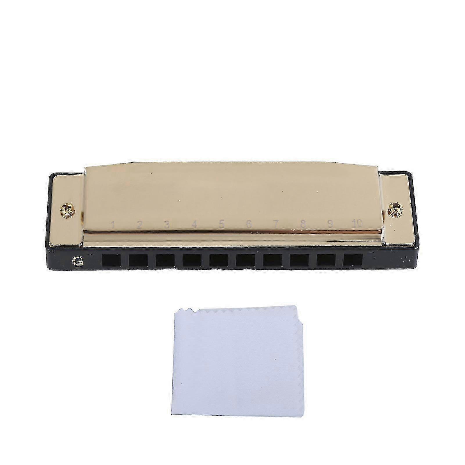 2025 Harmonica 10 Hole 20 Tone G Key Playing Mouth Organ Wind Musical Instrument with Box ClothGold