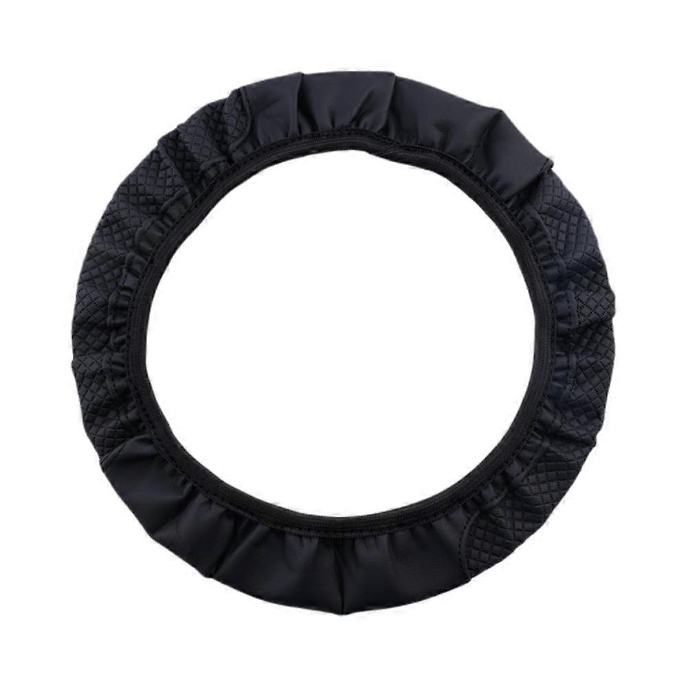 Black Leather Steering Wheel Cover with Double Circle Elastic Band, No Inner Ring, Wear-resistant, All-season Universal, Cross-border Accessories