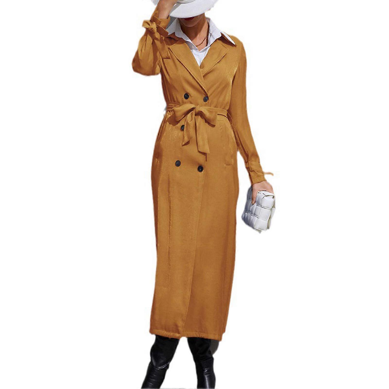 Women Trenchcoat Double Breasted Belted Overcoat Turn Down Collor Waist Slimming Cuff Decoration Pockets Long Sleeve Coat