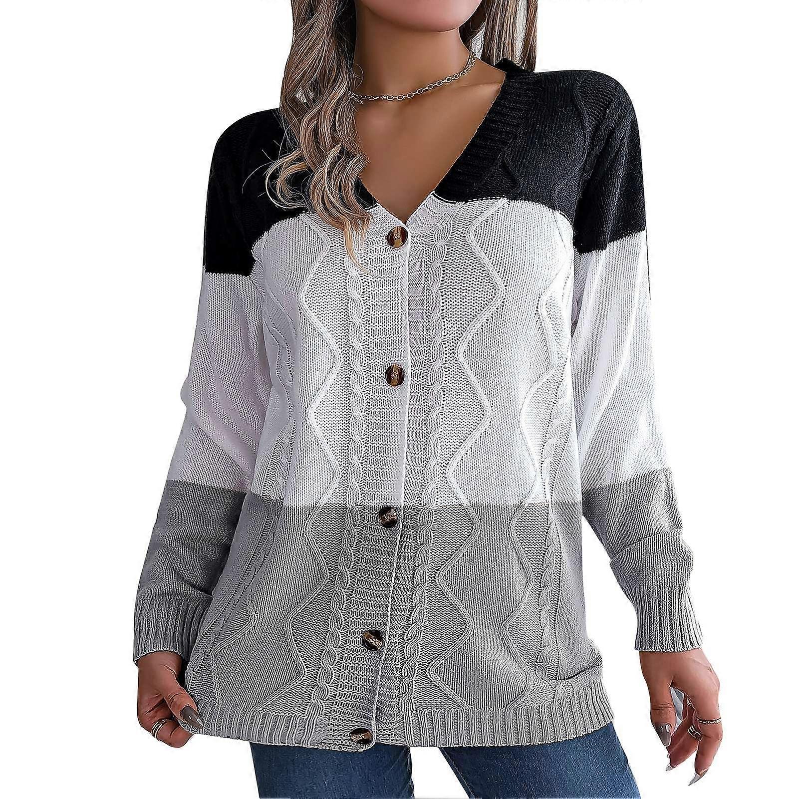 Women Sweater Long Sleeve Button Down Colorblock Stylish Comfortable Casual Knitwear Coat for Daily Wear