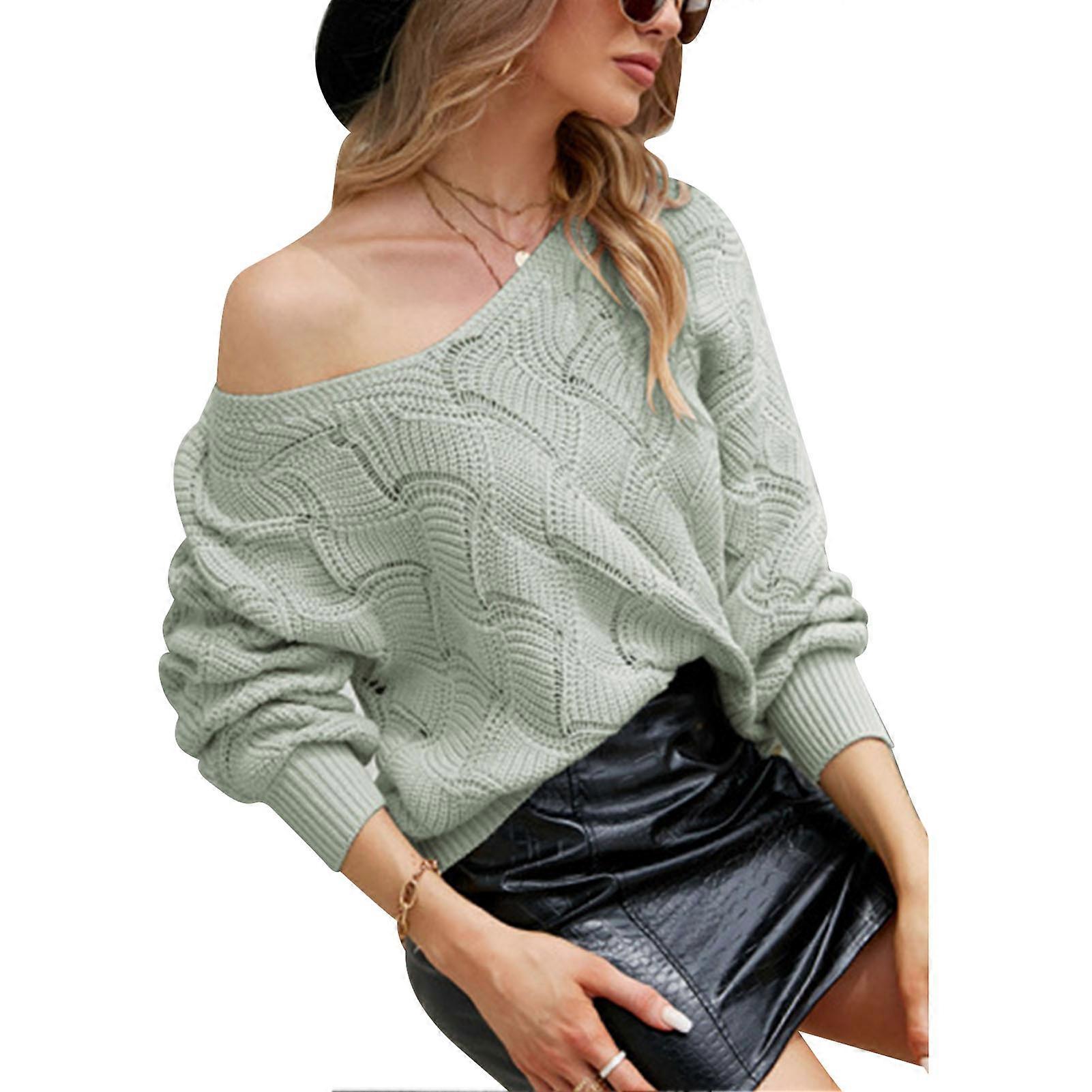 Women Loose Knit Sweater V Neck Pattern Texture Pure Color Long Sleeve Pullover Knitted Sweater