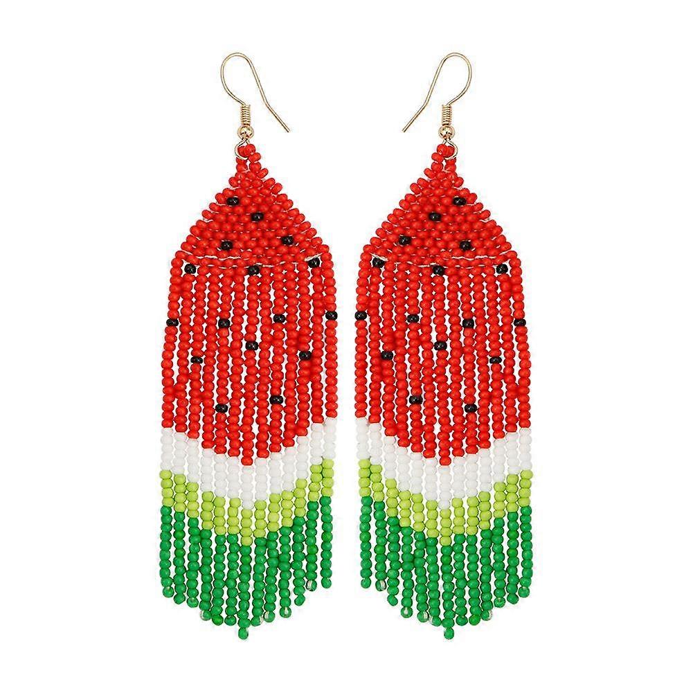 E69119 color (A)$ New exaggerated handmade fringed earrings bohemian vacation style pearl watermelon fruit earrings women