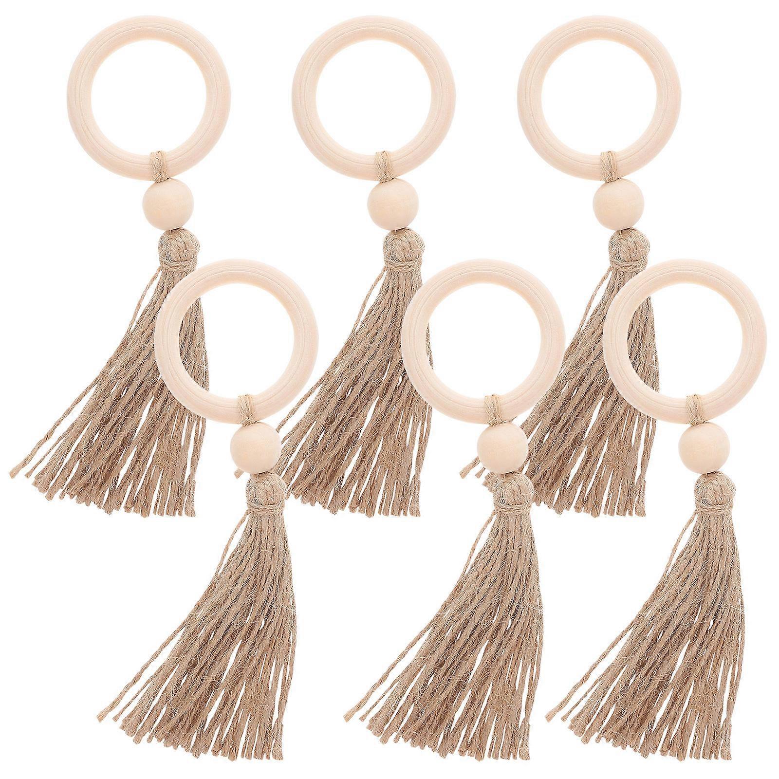 Boho Napkin Rings Rustic Wood Bead Napkin Rings for Party 6Pcs