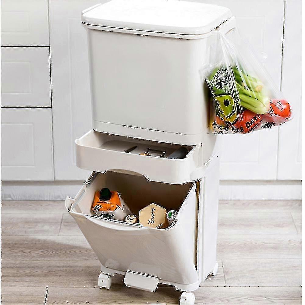 42l Recycling Pedal Bin 2 Compartment Rolling Kitchen Dry Wet Waste Can--