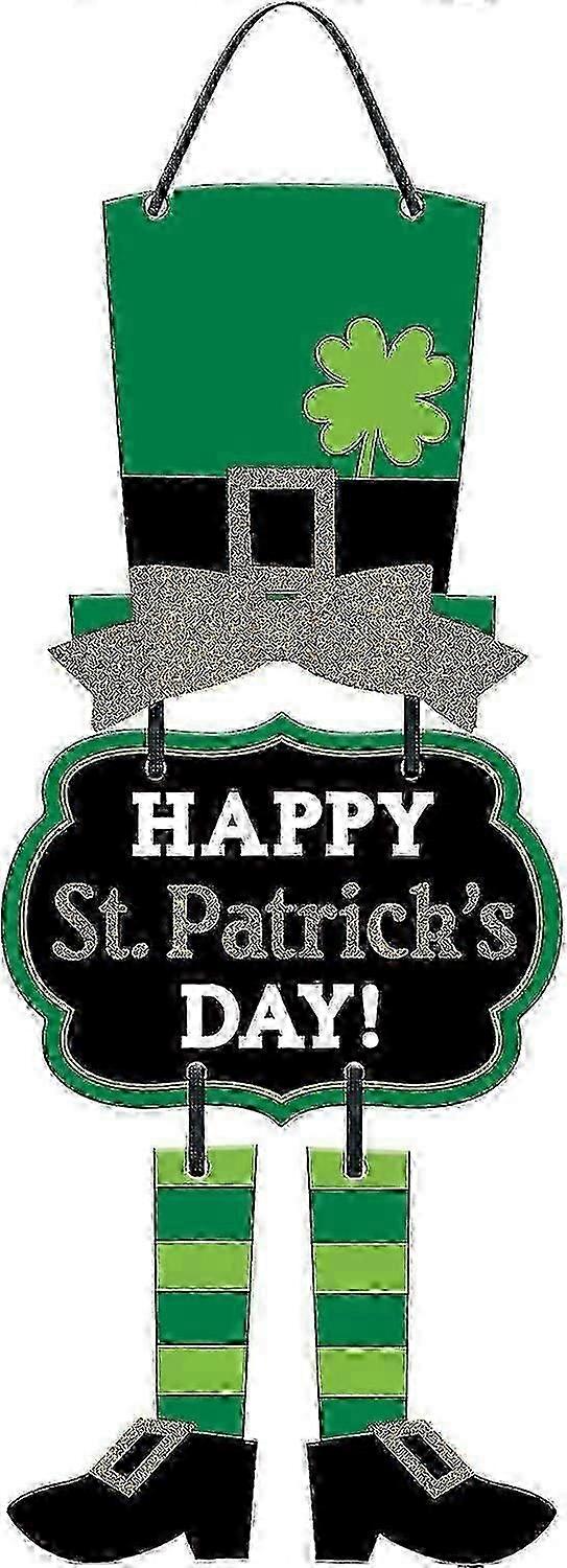Exquisite Festive Multicolor St. Patrick\'s Day Leprechaun Triple Sign - 19"x 8.5"(1 Pc.) - MDF Wall Decor with Glitter, Bow & Ribbon Hanger - Perfect