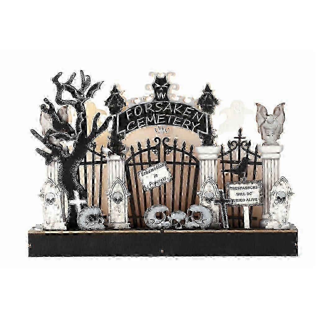 Exquisite Halloween Wood Cemetery Ghost Ornament Glowing Crafts Decor Accessory