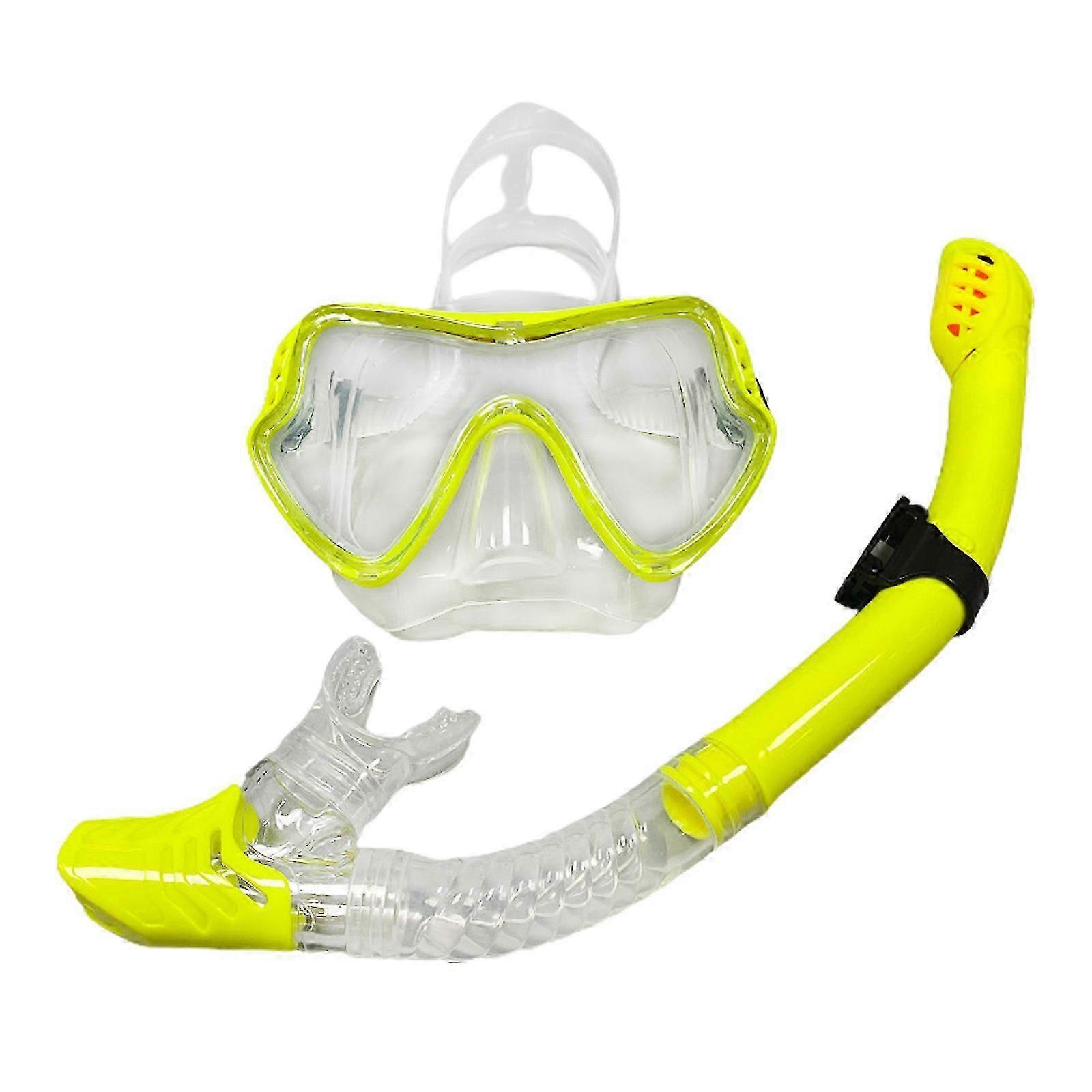 Anti Fog Tempered Glass Snorkel Mask for Snorkeling, Swimming and Scuba Diving-transparent frame-Yellow