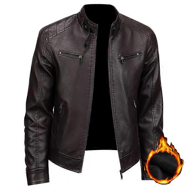Men's American Stand Collar Motorcycle PU Leather Jacket Stylish British Style Coat Winter Fleece Lined M-6XL