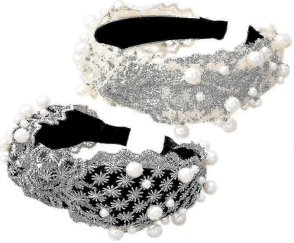 2pcs Handmade Crystal Beaded Headband with Pearl & Snowflake Pattern for Women
