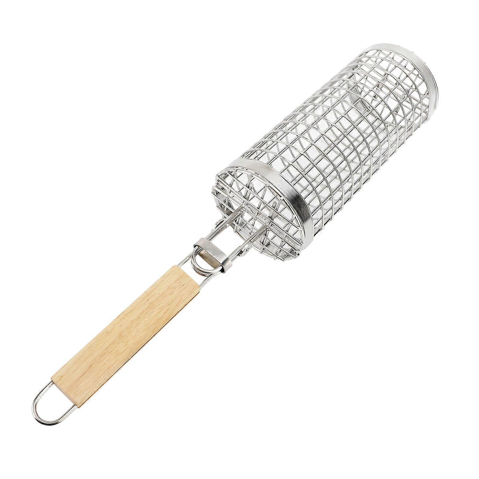 Rolling Grill Basket 304 Stainless Steel 466g Wooden Handle