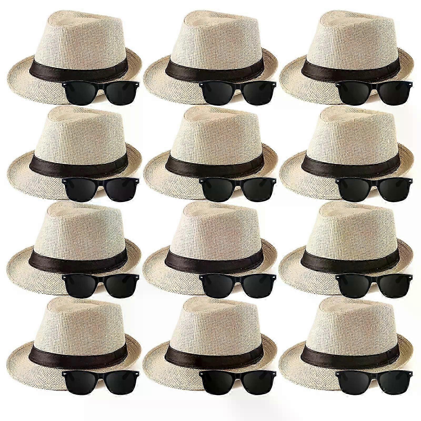 Straw Fedora Hat for Wedding & Party Favors - Short Brim Panama Hat for Men & Women at Havana Nights & Beach Events