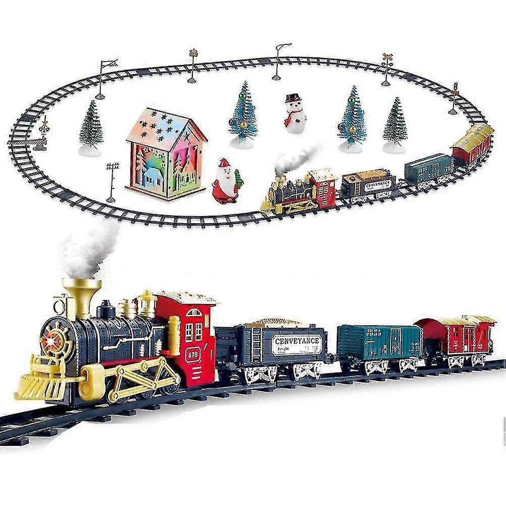 Christmas Spirit Year-Round : Experience the magic of the holidays anytime with our Battery Operated Christmas Train Set, complete with enchanting sounds and Animated Christmas Decor. Vintage Model Train Charm : Immerse yourself in nostalgia with our meticulously designed Toy Train, featuring authentic train sounds and a realistic Steam Effect. Safe & Non-Toxic Materials : Crafted from safety-conscious materials, our Christmas Train Set ensures worry-free play for the little ones. Easy Assembly & Storage : Quick to set up and dismantle, this set is perfect for decorating around the Christmas tree during the festive season. LED Lights & Realistic Sounds : Light up your home with vibrant LED lights and be delighted by actual train sounds that add to the immersive experience. Step into a world of timeless charm with our Christmas Train Set, a captivating centerpiece for your holiday decorations. Designed with a touch of vintage, it brings joy and warmth to your home, perfect for creating cherished memories with family.