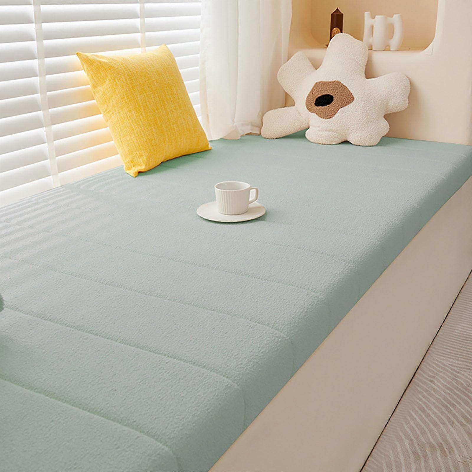 Bench Cushion 6cm Thick Waterproof Teddy Plush NonSlip 170x35cm Light Green For Outdoor Porch Swing