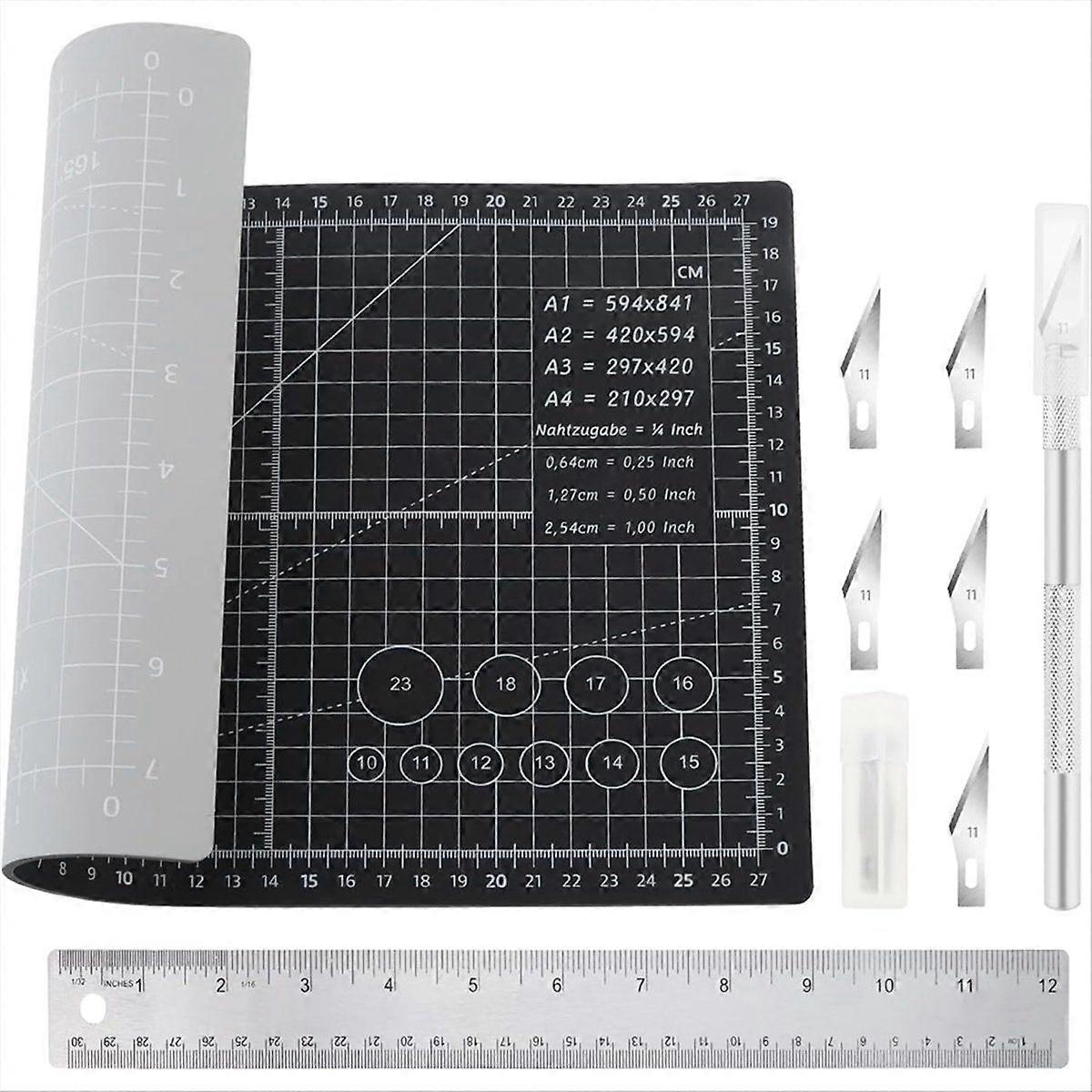 A4 Self Healing Cutting Mat Carving Craft-Knife with 5 Extra Blades and Cork Ruler 12 Inch / 30cm D