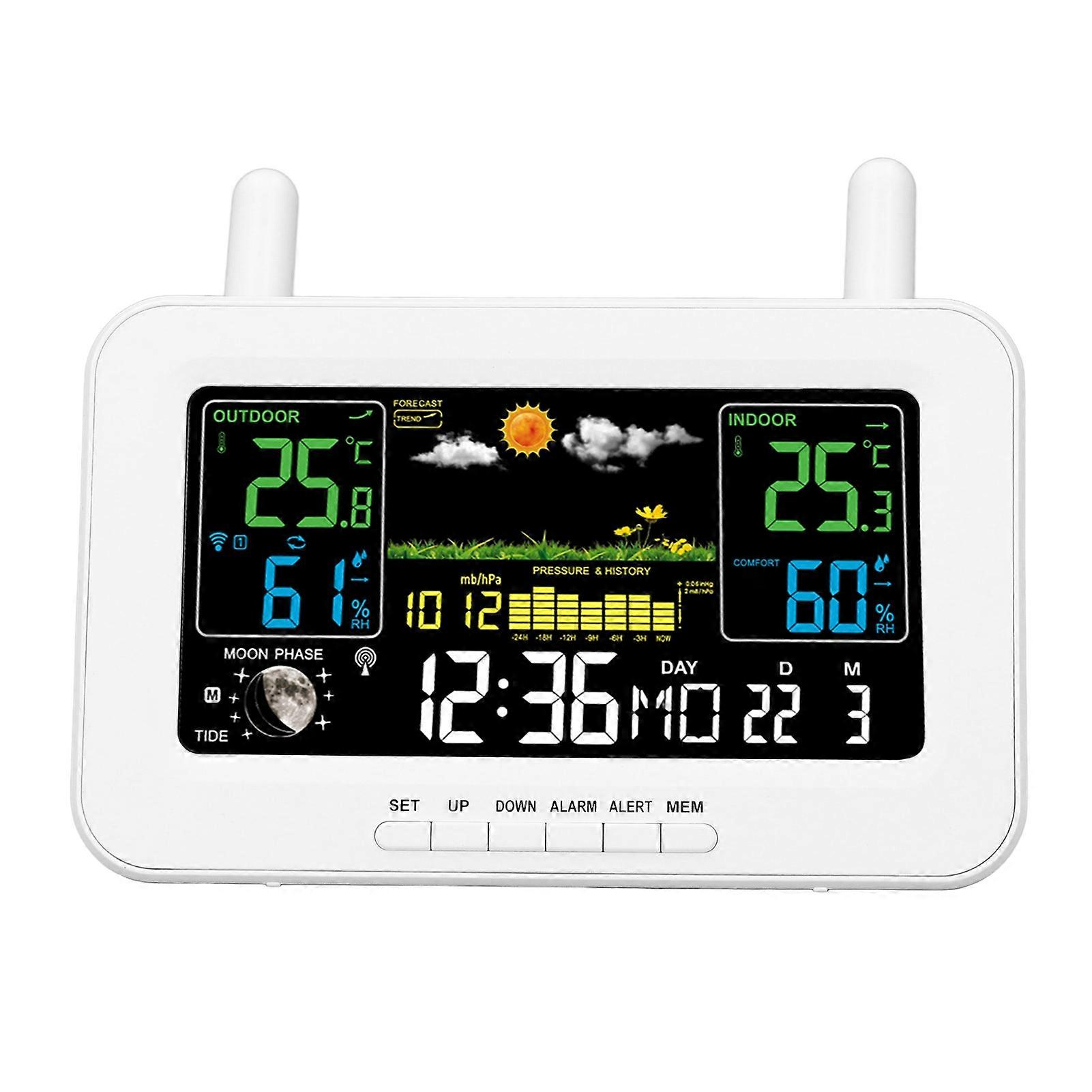 Indoor Outdoor Wireless Weather Station Thermometer, Color Display, EU Plug, White