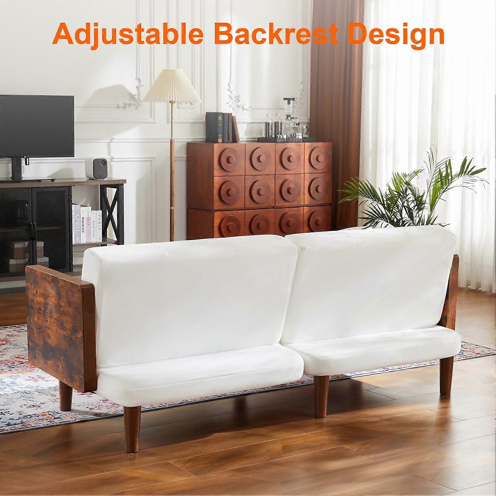 Beige Sofa Bed Twin 71in Wide Cotton Fabric 14-Position Angle Adjustable