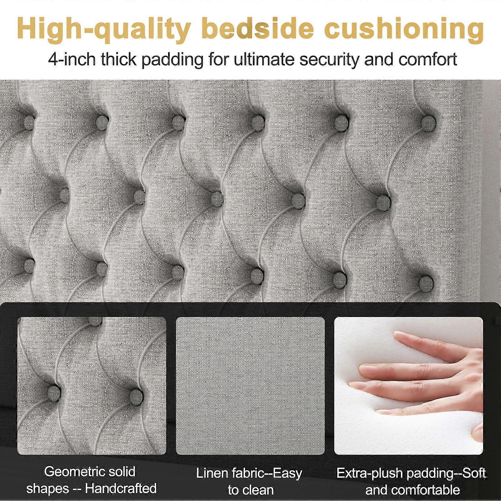 Queen Size Gray Upholstered Tufted Button High Back Headboard
