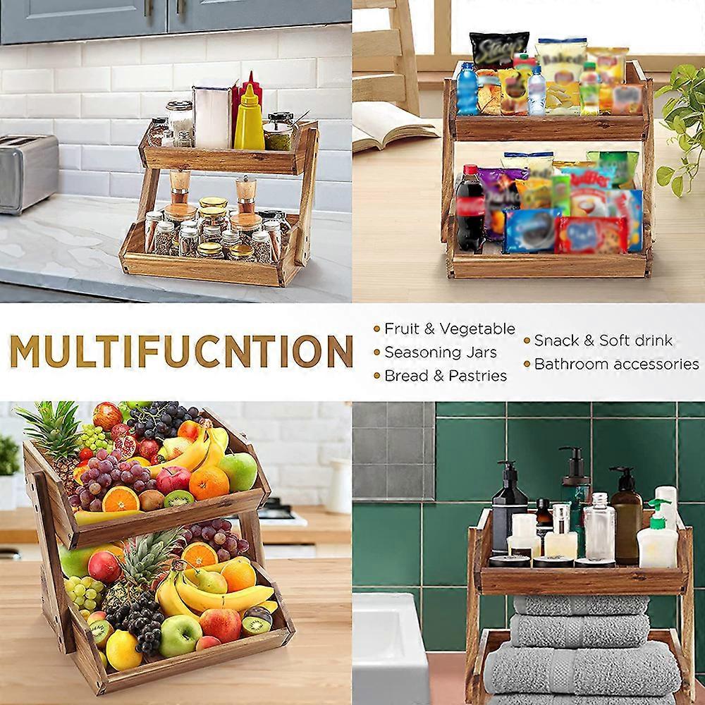 2 Tier Wooden Fruit Basket for Kitchen Counter 30x26.7x23cm Brown