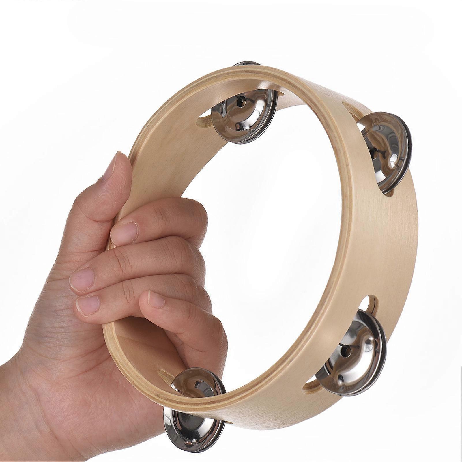 6 Inch Wooden Tambourine with Metal Bells Natural Color