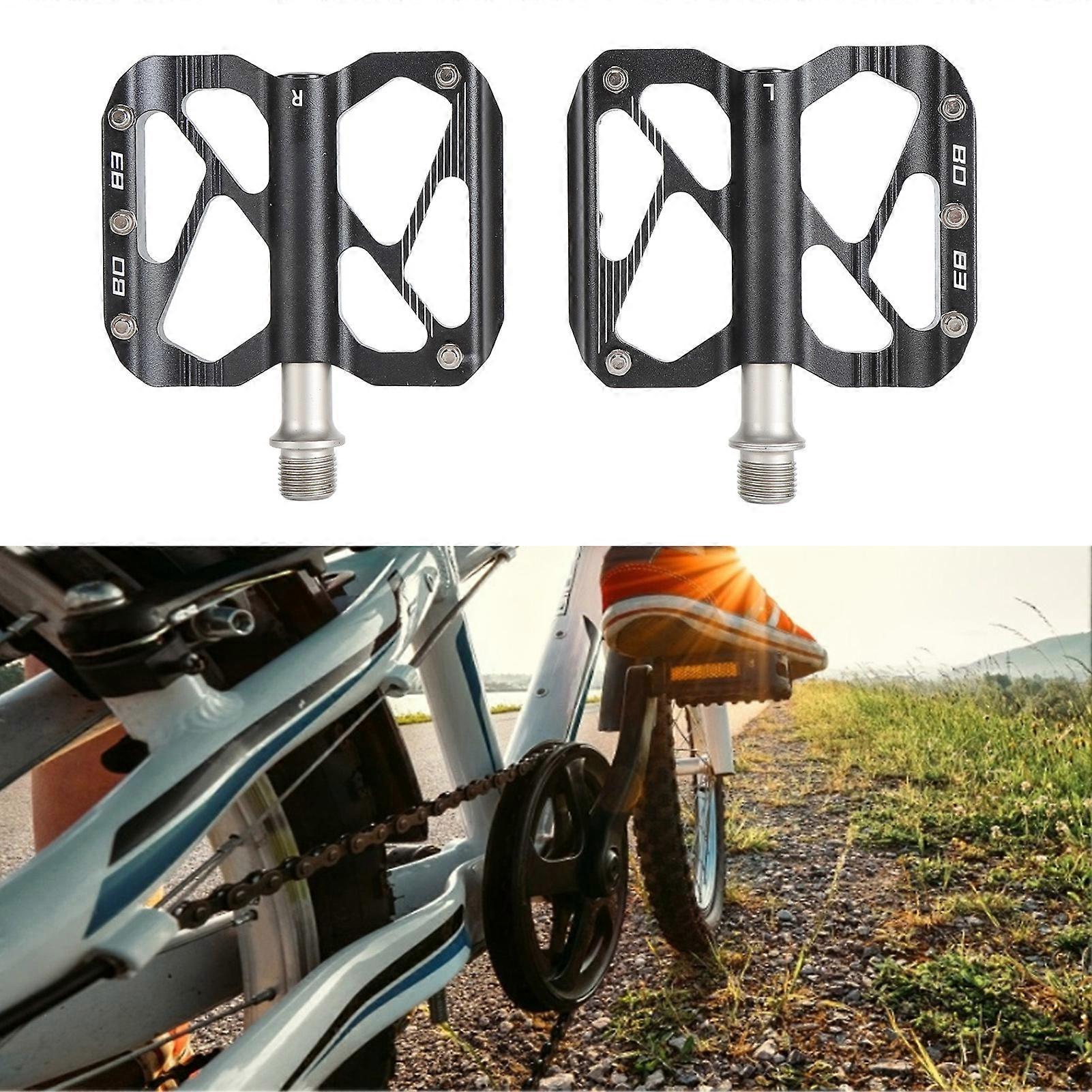 Aluminum Alloy Flat Bike Pedals 14mm CNC 3 Bearings Anti-Skid