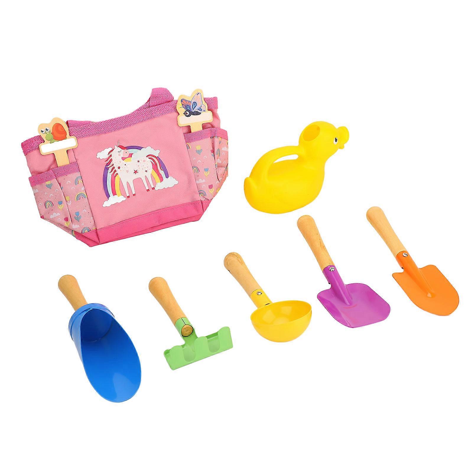 Kids Gardening Tools Set Wood Watering Can Shovel Rake Roseate Bag
