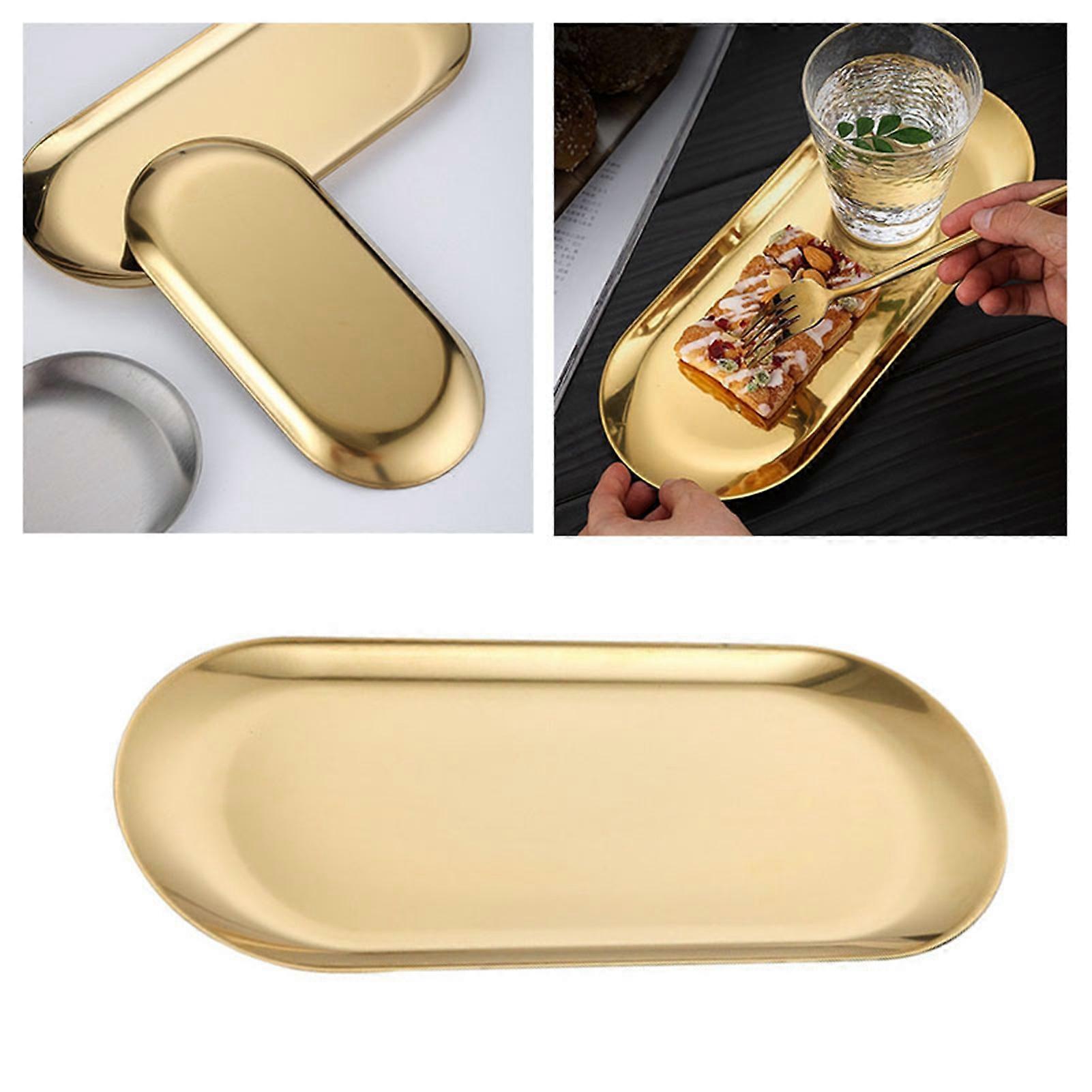 Stainless Steel Oval Tray 18x8.5cm Gold Non-Slip Decorative Tray