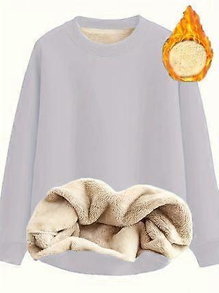 Women's Fleece-Lined Round Neck Pullover Hoodie Thickened Warm Casual Top