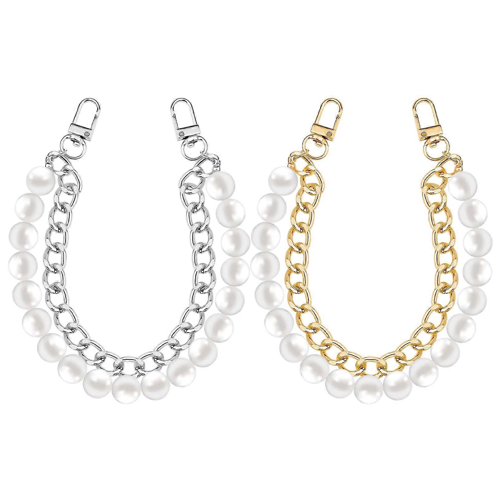 2pcs Purse Extender Chain: Handbag Artificial Pearl Chain Strap Extender - Purse Strap Replacement With Buckle Wallet Making Accessories