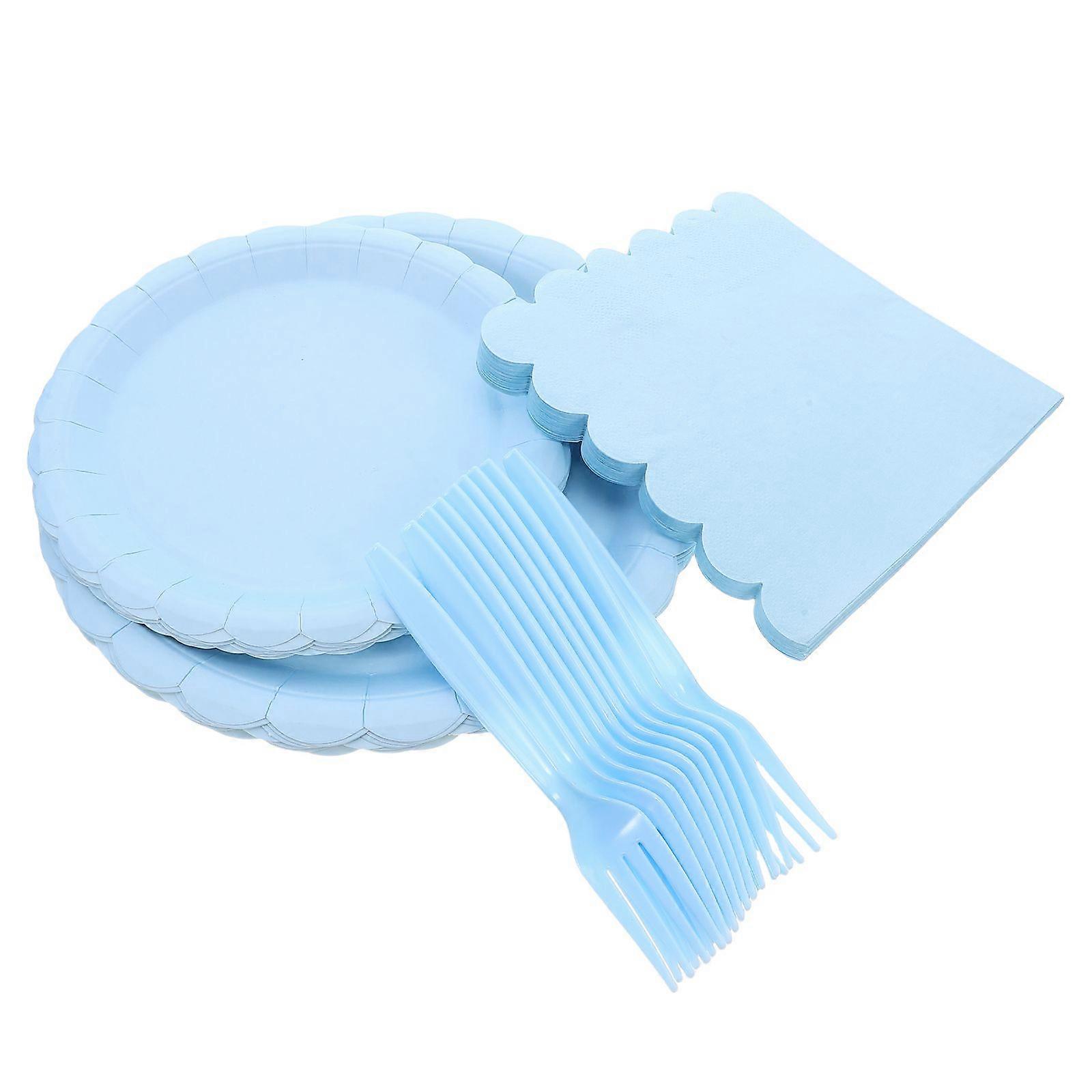 1 Set Disposable Party Dinnerware - Scalloped Paper Plates Disposable Cake Dessert Dish with Fork Napkins for Birthday Baby Shower Wedding