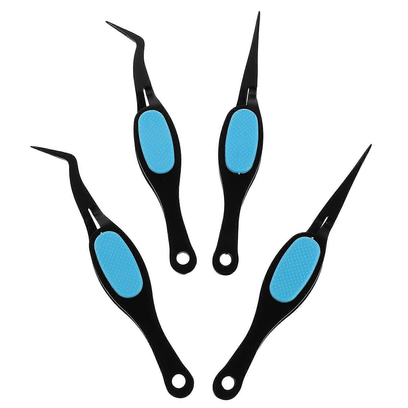 4pcs Stainless Steel Reverse Tweezers Curved & Straight Fine Tip Tweezers for Nail Art Eyelash Extensions Manicure Crafting