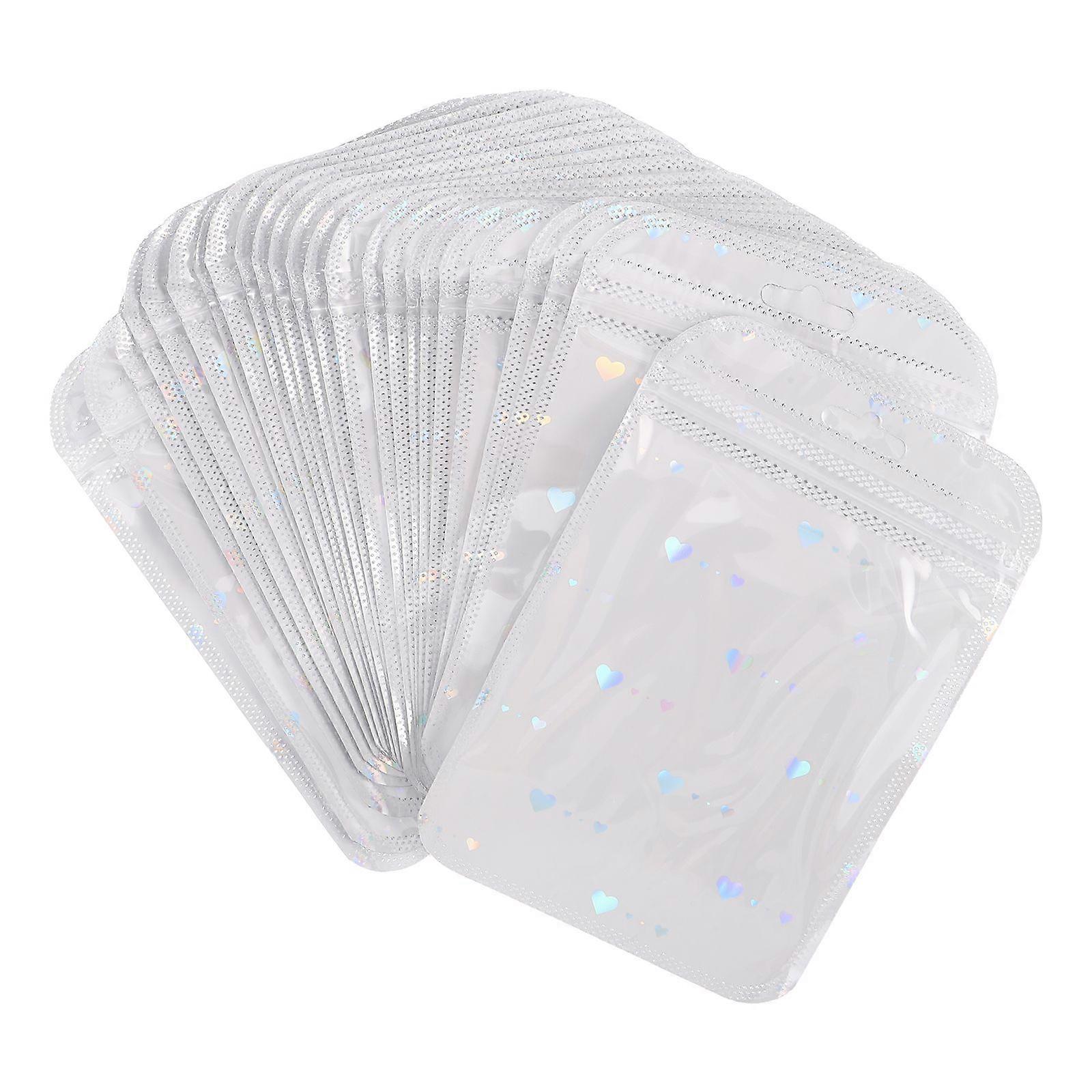 50pcs Self Sealing Bags: Clear Resealable Pouches for Small Business 6x4" - Zip Pouch with Holographic Heart Pattern for Candy Treats Jewelry Sample V