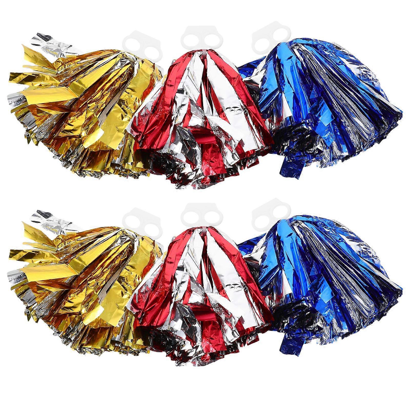 Description These cheer pom-poms feature a baton handle design, offering secure grip for cheerleaders during competitions or dance routines. With lightweight materials, they ensure effortless movement while dazzling metallic foil pompoms draw attention at school sports events or spirit squad performances, making them ideal cheering props for both parties and team celebrations. Features -Color:Assorted Color -Material:Plastic -Size:30.00X30.00X5.50cm/11.79X11.79X2.16in -Enhanced grip for performance: the cheer pompoms with baton handle are designed to boost grip stability, allowing cheerleaders to perform high level routines confidently at sports events and cheering squad activities -Lightweight for easy use: made from ultralight materials, these metallic cheerleader pom poms minimize weight and help reduce fatigue, enabling squad members to execute dance moves and cheering props effortlessly -Eye catching colors for spirit: vibrant colors and plush spirit sticks ensure your cheering team attracts attention, making these cheerleading pompoms a must for sports team cheering party favors and school spirit items -Versatile for various occasions: suitable for dance squad accessories, sports events, these adult cheerleader pom poms offer dynamic versatility from team games to festive gatherings -Convenient to carry and store: easy to transport, and simple to store, suitable for daily squad training and traveling to competitionsPackage list: 6 x Cheerleading Pom Pom