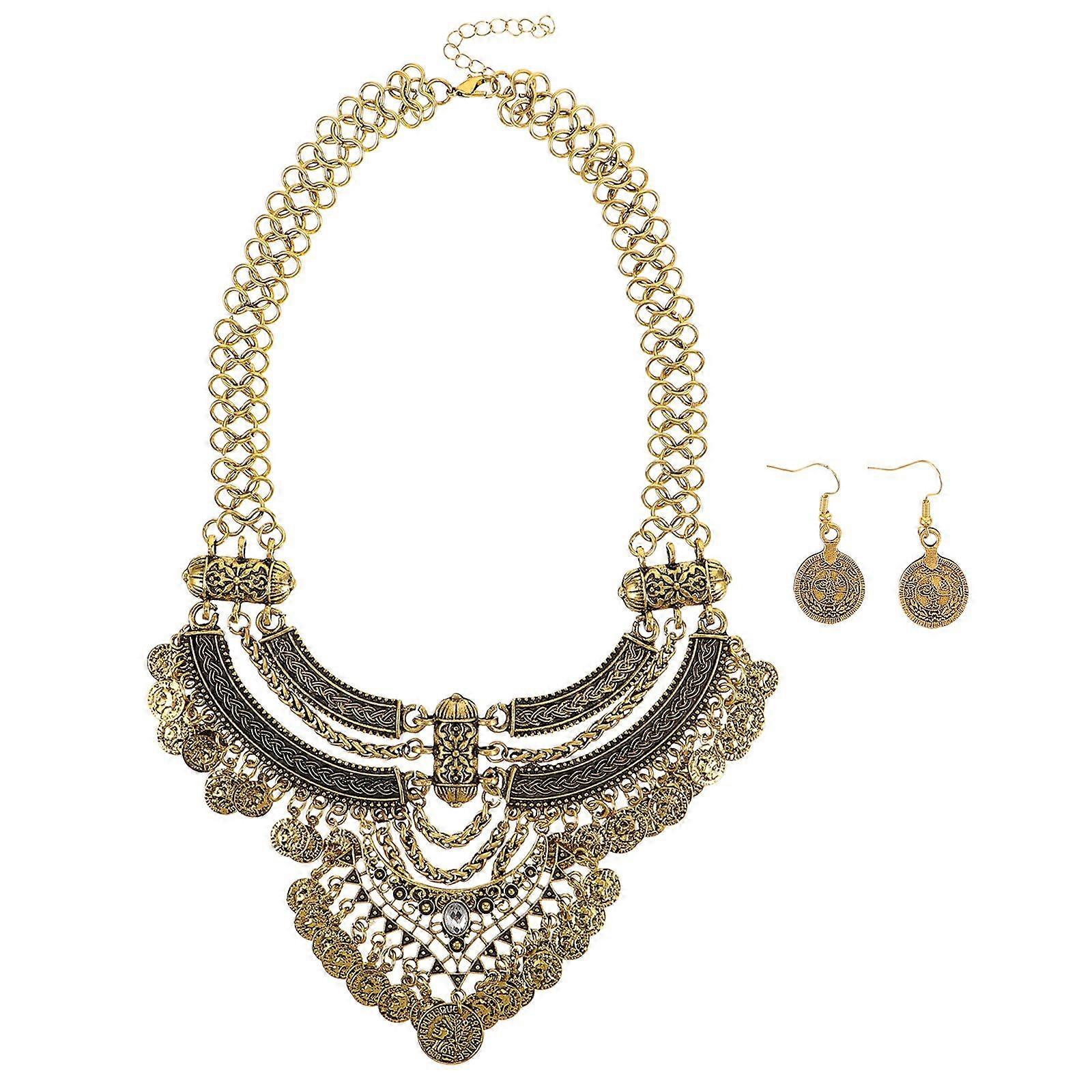 1 Set Bohemian Punk Jewelry Set For Women Featuring Ethnic Statement Necklace Fashion Chunky Chain with Earrings For Party Festival Everyday Trendy Oc