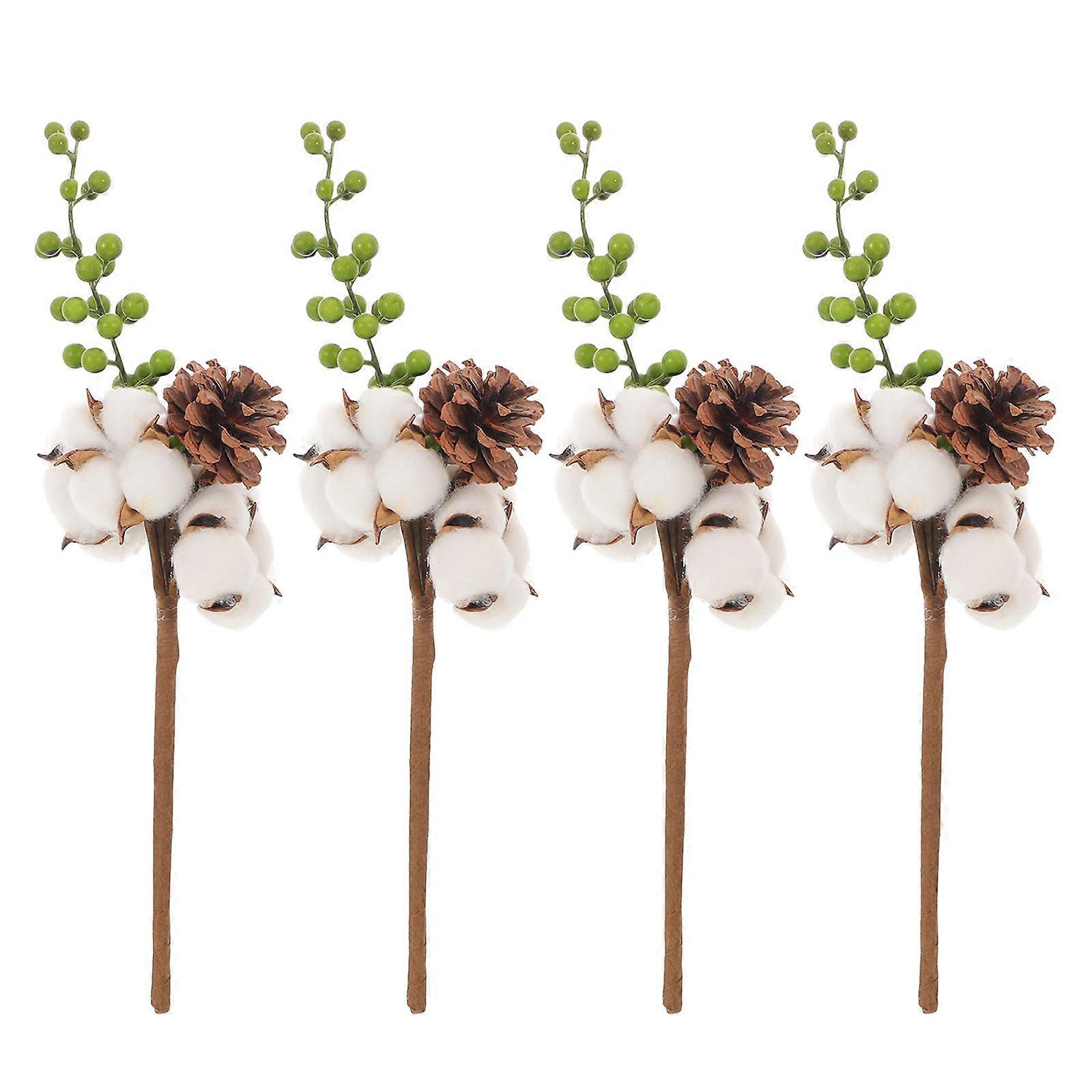 4pcs Cotton Stems: Realistic Dried Cotton Branches With Vivid Berry & Pine Cone - Rustic Autumn Floral Picks Preserved Flower Craft Table Centerpiece