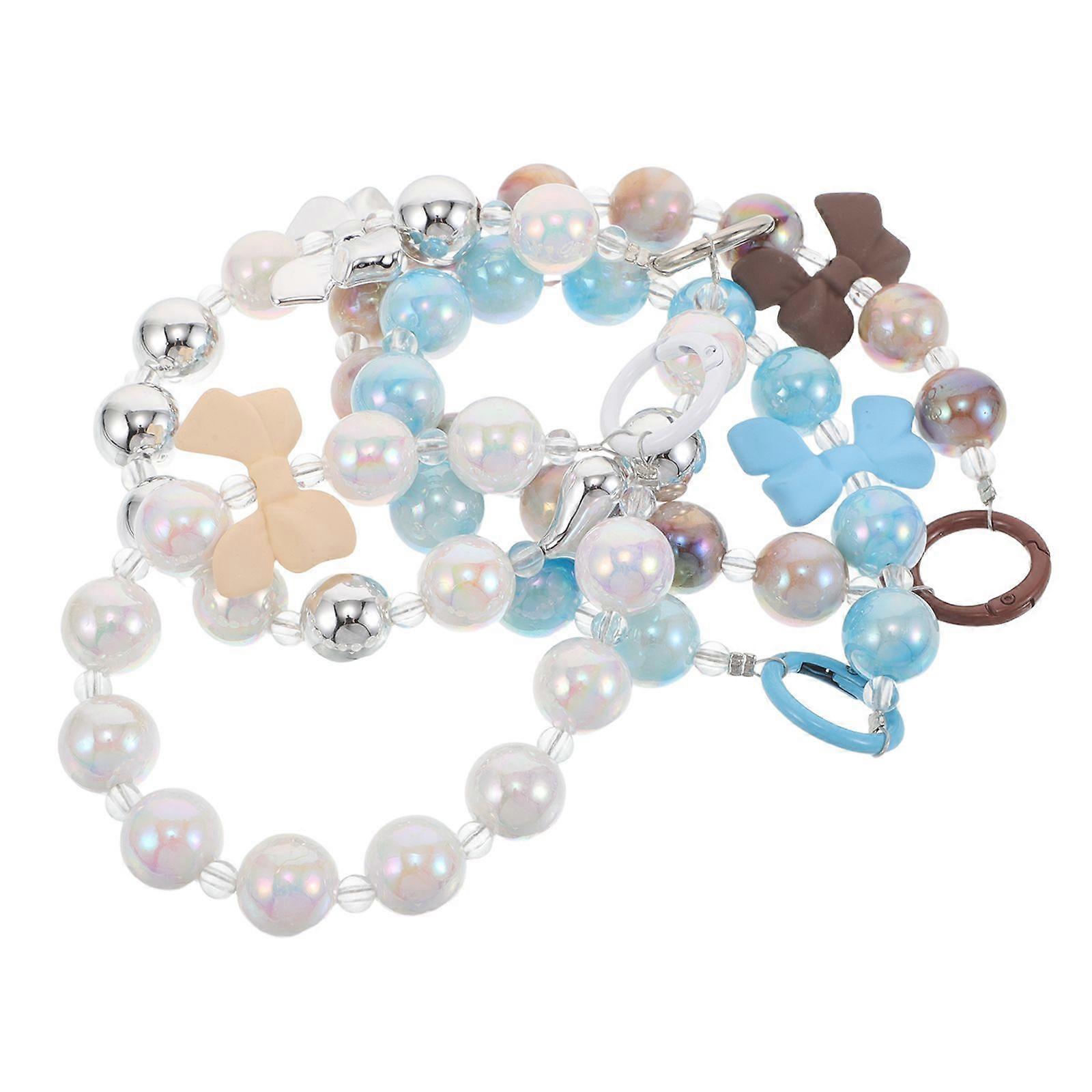 4pcs Bow Wrist Chain for Phone: Beaded Phone Charm Lanyard with Detachable Buckle - Cute Cellphone Wristlet Keychain Minimalist for Women Girls