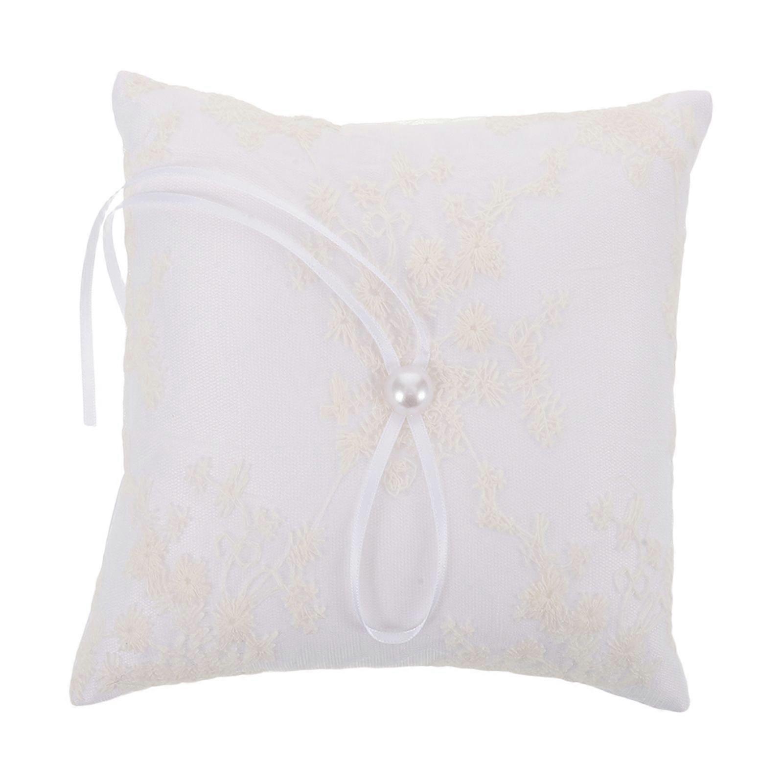Ring Bearer Pillow: Vintage Wedding Ring Pillow Embroidered Flower Ribbon Rustic Bridal Ceremony Bearer Holder for Wedding Party