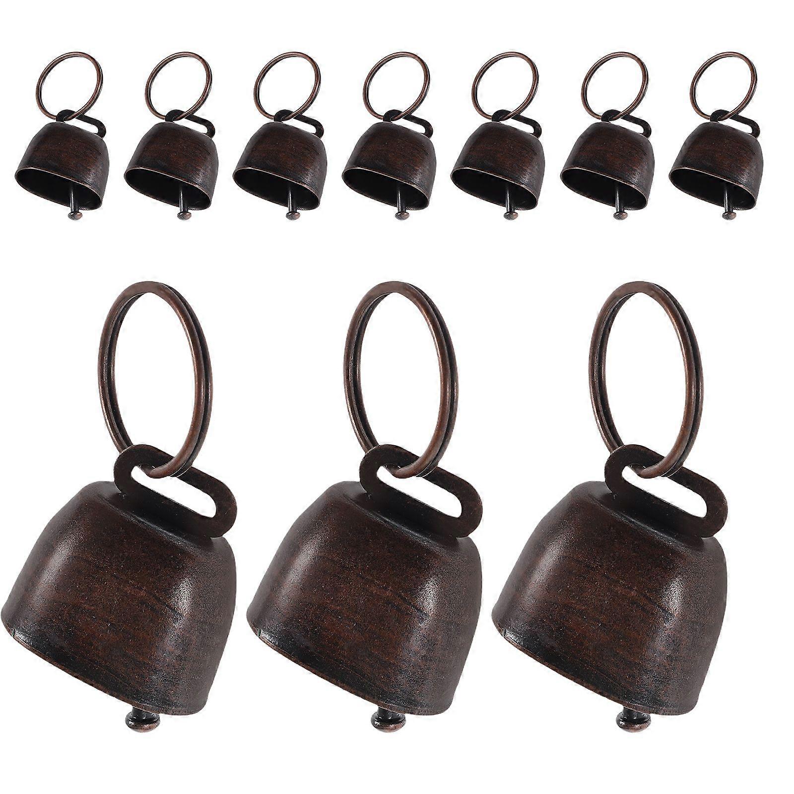 10pcs Metal Cow Bell: Rustic Christmas Jingle Bell - Handheld Noise Maker - Loud Cowbell with Handle for Sports Events Cheering Party Celebrations