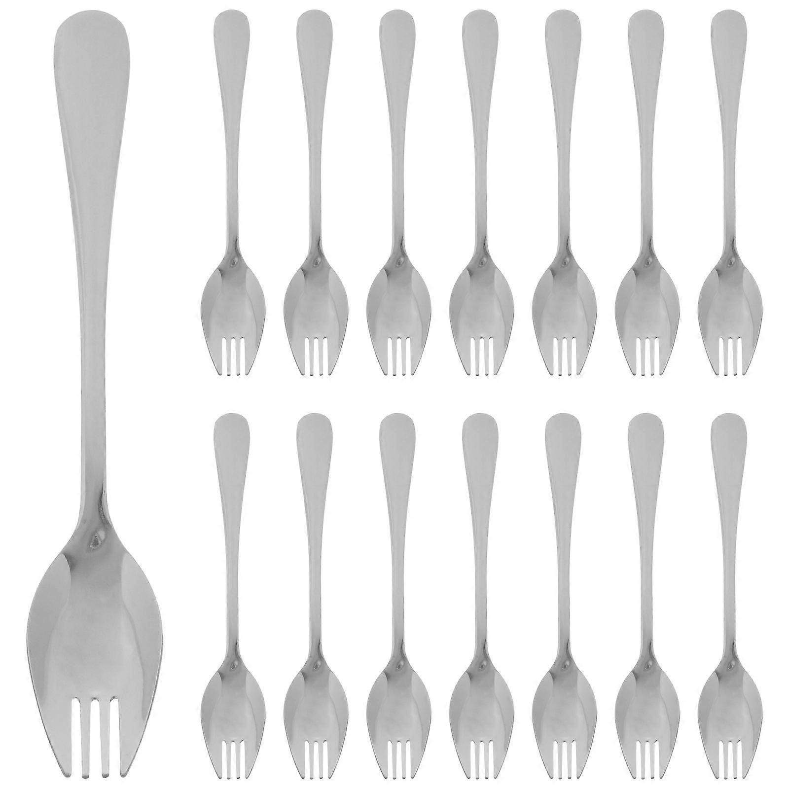 15pcs Stainless Steel Spork: Spoon Fork For Fruit Salad Dessert - Long Handle Silverware - Metal Flatware Utensil For Picnic Coffee Shop Snacks Pasta