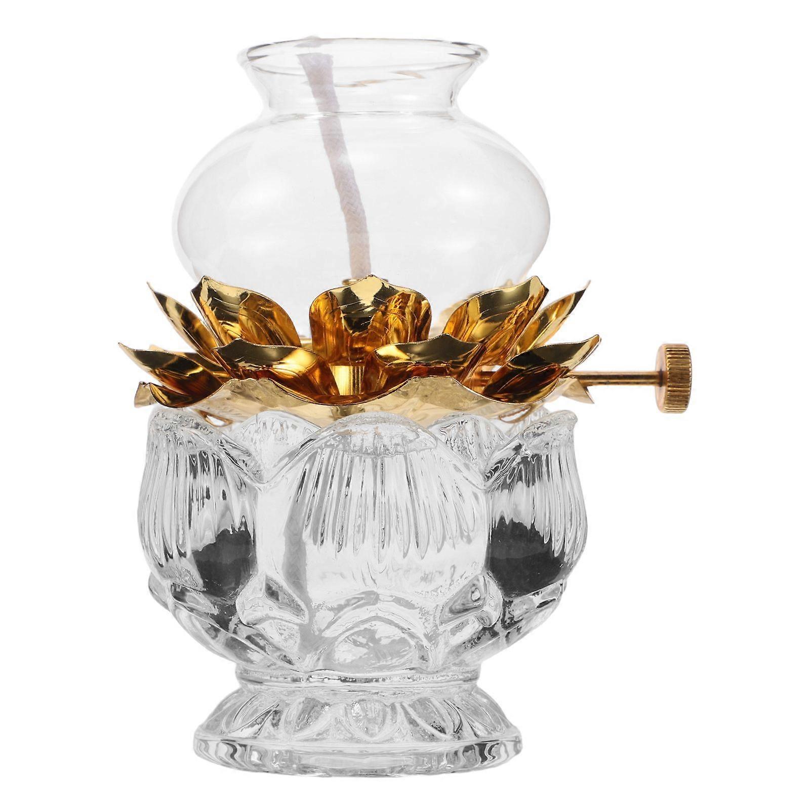 Description This decorative glass lamp features a retro oil lamp design with clear glass, showcasing exquisite lotus flower patterns. The kerosene oil lamp includes a knob and a windproof metal cover, making it ideal for home lighting, cozy dinners, or creative indoor use in vintage or modern spaces. Features -Color:Transparent -Material:Glass, metal -Size:12.00X8.00X8.00cm/4.72X3.14X3.14in -Artistic home ambience: featuring a vintage lotus lamp design, this glass kerosene oil lamp adds a retro artistic touch to your home lighting, ideal for living rooms, bedrooms, and tabletop decor -Windproof stability: the clear kerosene lamp lantern is built with a professional windproof structure, ensuring flame steady for indoor oil lamps use, even when air moves around -Adjustable Knob: The side knob allows you to easily adjust the wick height for optimal flame control -Easy maintenance: its lamp cover allows convenient addition and wick replacement, making this home lighting lotus oil lamp crafts simple to use and maintain -Versatile application: suitable for home, temple, or church, the creative glass oil lamp can be a kerosene night light or a vintage emergency lamp for indoor and outdoor settingsPackage list: 1 x glass lotus oil lamp