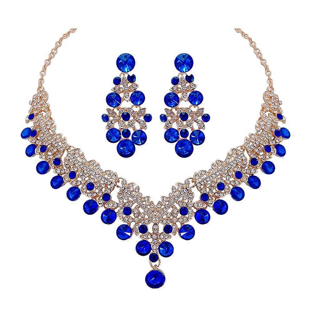 1 set of Wedding Necklace Earring Set Shiny Rhinestones Neck Chain Earrings Dcor Blue