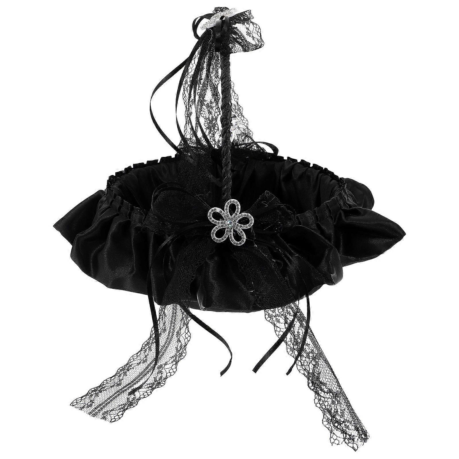Black Lace Flower Girl Basket: Wedding Bridal Accessories Decor - Storage Small Flower Holder For Ceremony - Elegant Bridal Floral Basket For Petals