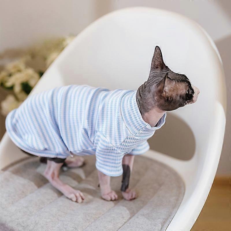 Spring New Breathable Striped Shirt Hairless Cat Clothes German Pet Cat Base Shirt Cloth Doll Blue Cat Kitten Long Sleeve
