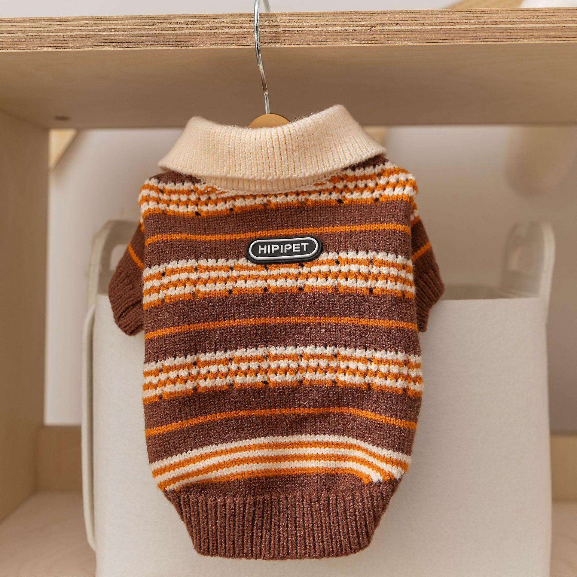 Pet Fashion Autumn and Winter Lapel Striped Sweater for Outdoor Small Dog Clothing