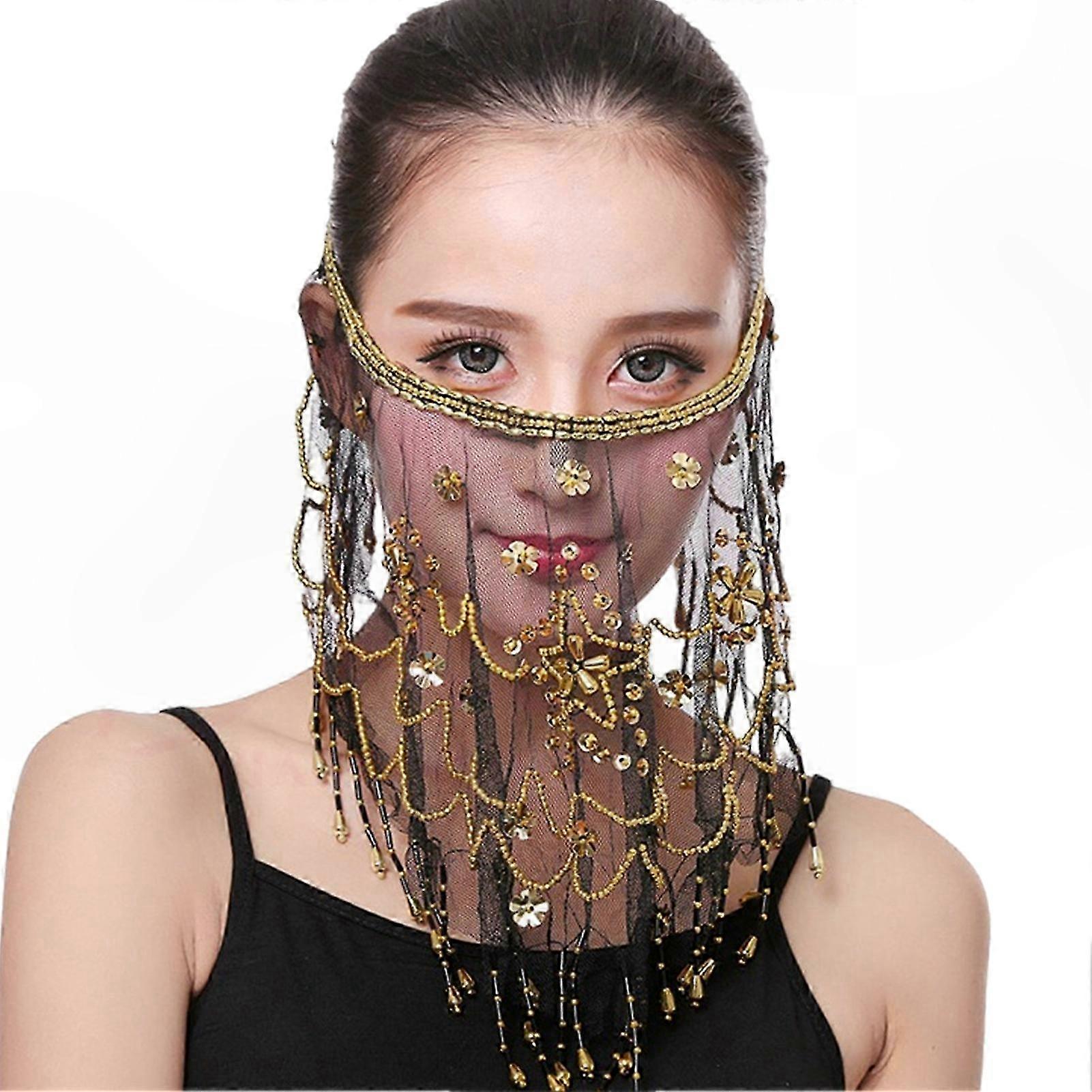 Sequin Lace Veil for Dance Tribal Costume Accessory with Adjustable Strap