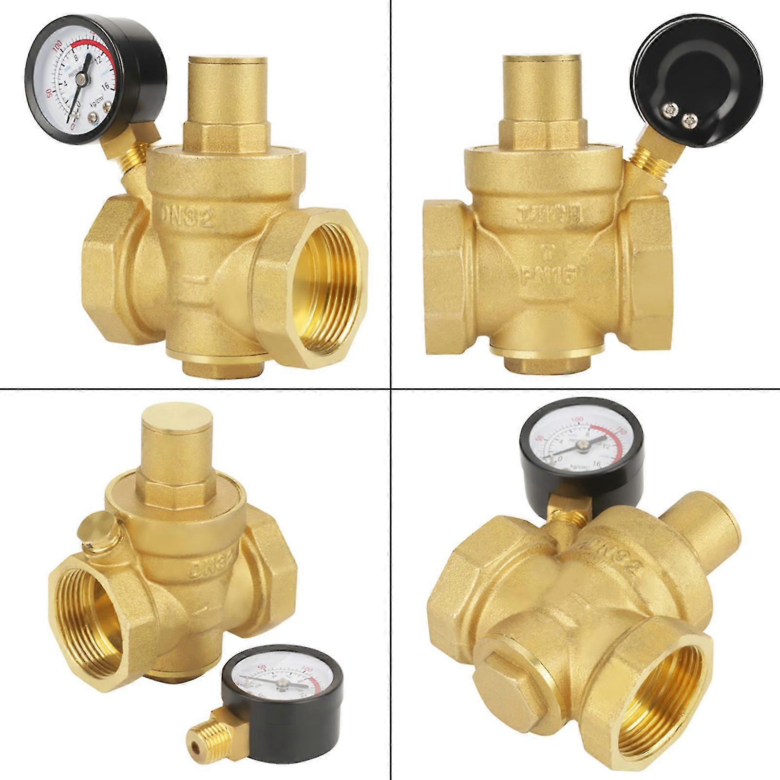 Features: This pressure reducing valve adopts piston structure, simple internal structure, strong environmental use, durable to use. No bypass pipe is required, and the distribution pipe is simple, which can save a lot of space and distribution cost. It can be installed in front of most tap water equipment. There is pressure adjustment knob in the top cover, which can be adjusted free. This product can withstand pressure of 1.6Mpa. Specifications: Material: Brass Maximum range: 16 kgf or cm2 Water pressure: 0.05-0.8Mpa (7.25-116psi) Connector size: DN32 Inlet pressure: 1.6Mpa (Max) Weight: 750g Package included: 1 x Pressure meter 1 x Brass water pressure reducing valve Note: Please note that the new type and old type of this product will be sent randomly, and make sure you will not mind before ordering. 1,This pressure reducing valve adopts piston structure, simple internal structure, strong environmental use, durable to use 2,No bypass pipe is required, and the distribution pipe is simple, which can save a lot of space and distribution cost 3,It can be installed in front of most tap water equipment 4,There is pressure adjustment knob in the top cover, which can be adjusted free 5,This product can withstand pressure of 1.6Mpa