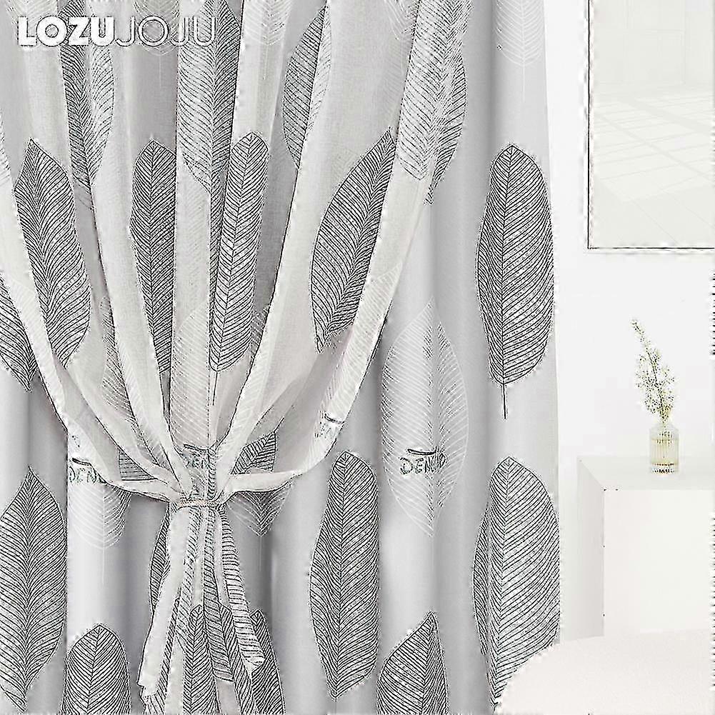 A Set of LOZUJOJU Blackout Curtains And Tulle Leaves Print Curtain For Living Room Bedroom Window Drapes miao7